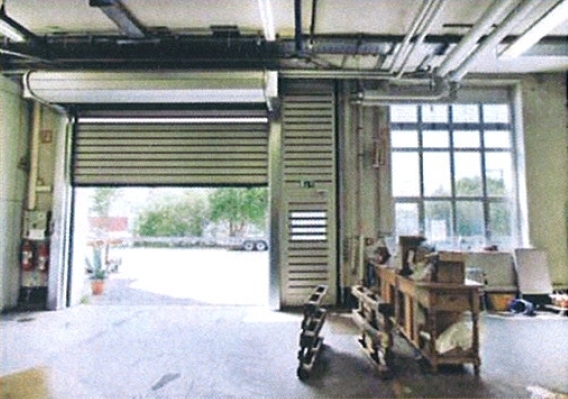 Die Halle verfügt über eine ebenerdige Anfahrt mit einem Rolltor