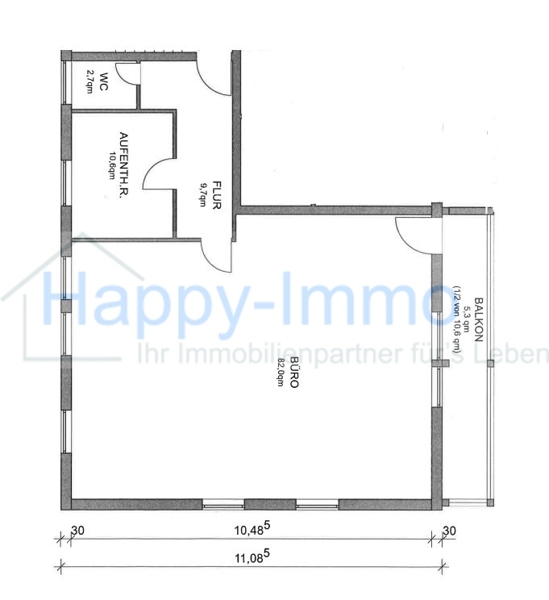 Sie erhalten hier einen großen Büroraum mit Westbalkon, einen Aufenthaltsraum, das WC und einen geräumigen Flur. Der Zugang erfolgt über das Treppenhaus ohne Lift.
