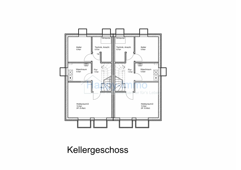Die mögliche Wohnfläche incl. Hobbyraum und Terrasse ist ca. 145 qm je Haushälfte, Stellplatz 2-3 je Haushälfte. Die Planskizzen sind unverbindlich - ein konkreter Bauantrag bei der Baubehörde ist noch zu stellen.