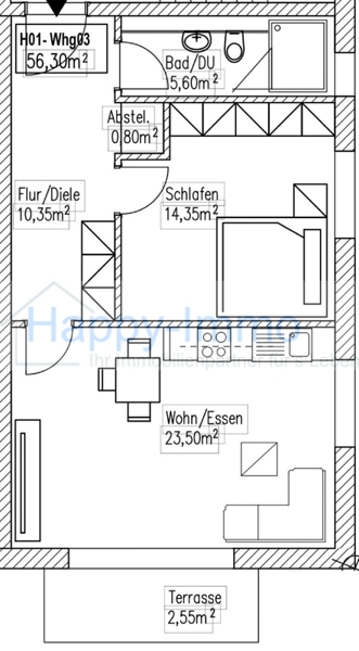 | Wohnfläche | 56 m² | Nutzfläche | 3 m² |